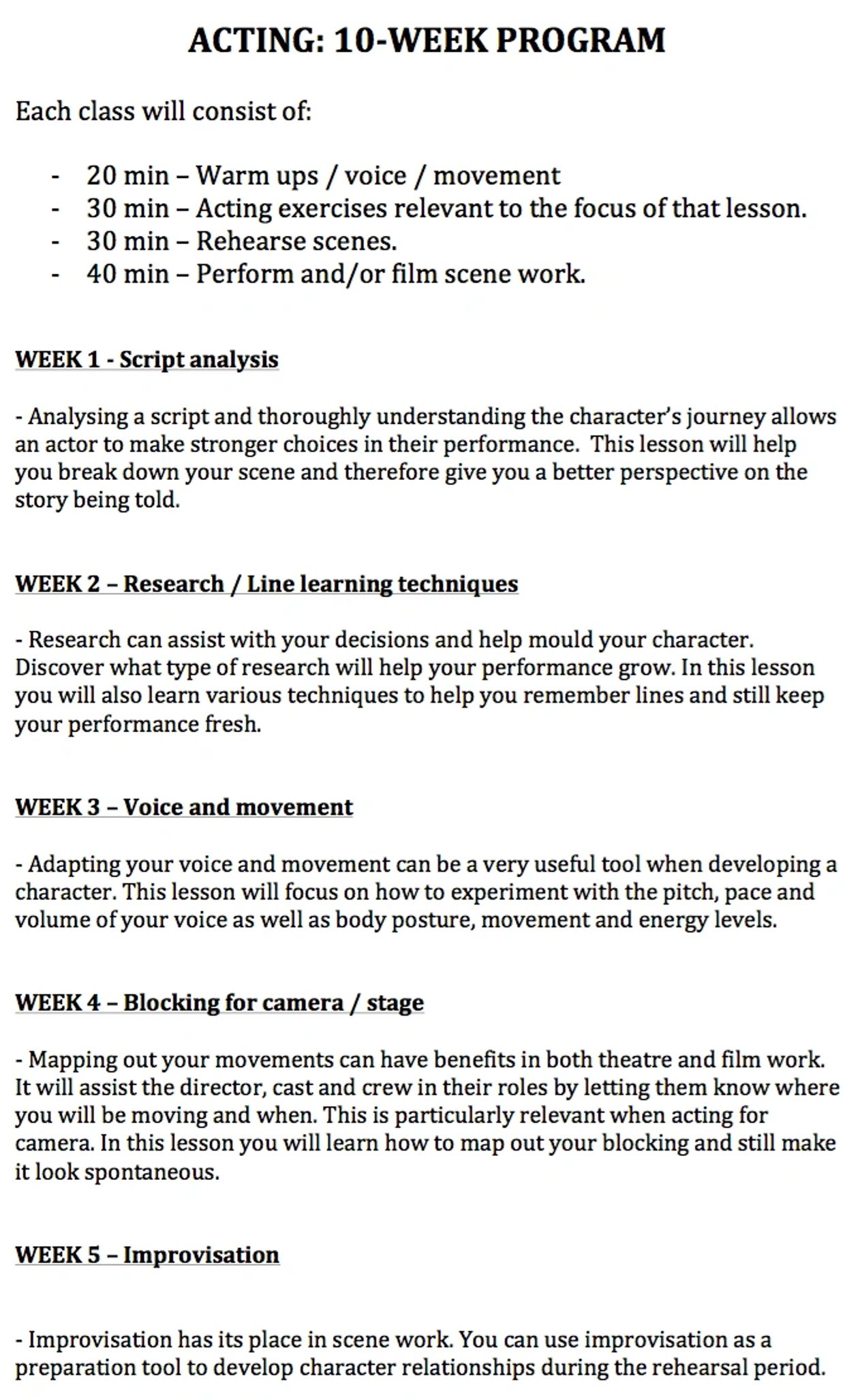 These classes focus on the fundamentals of acting.